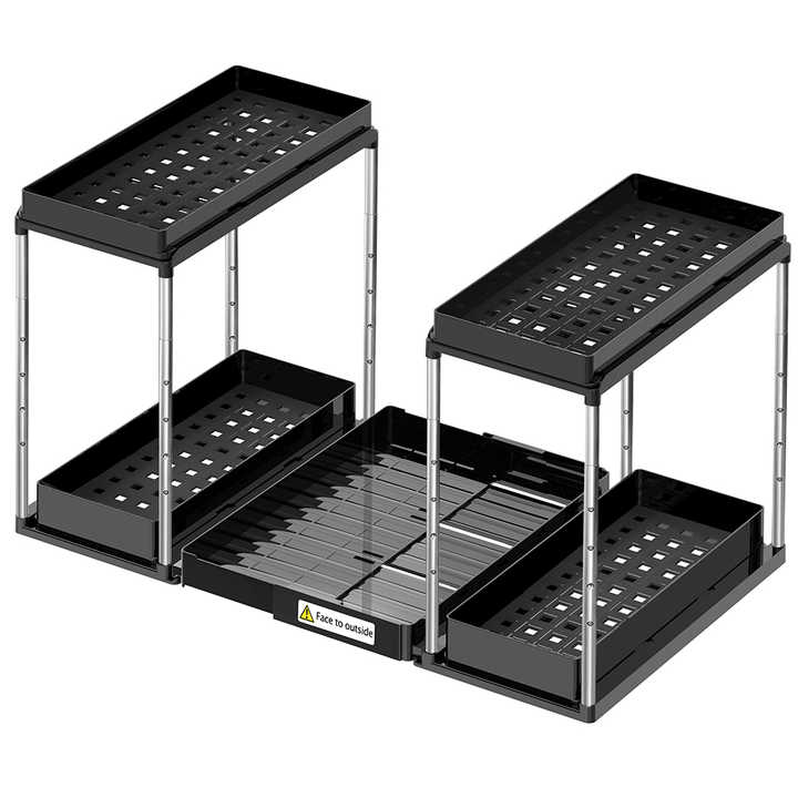 2-Tier Multifunction Kitchen Sink Storage Organizer Portable Standing Type Rectangle Black Home Organizers Save Space Racks