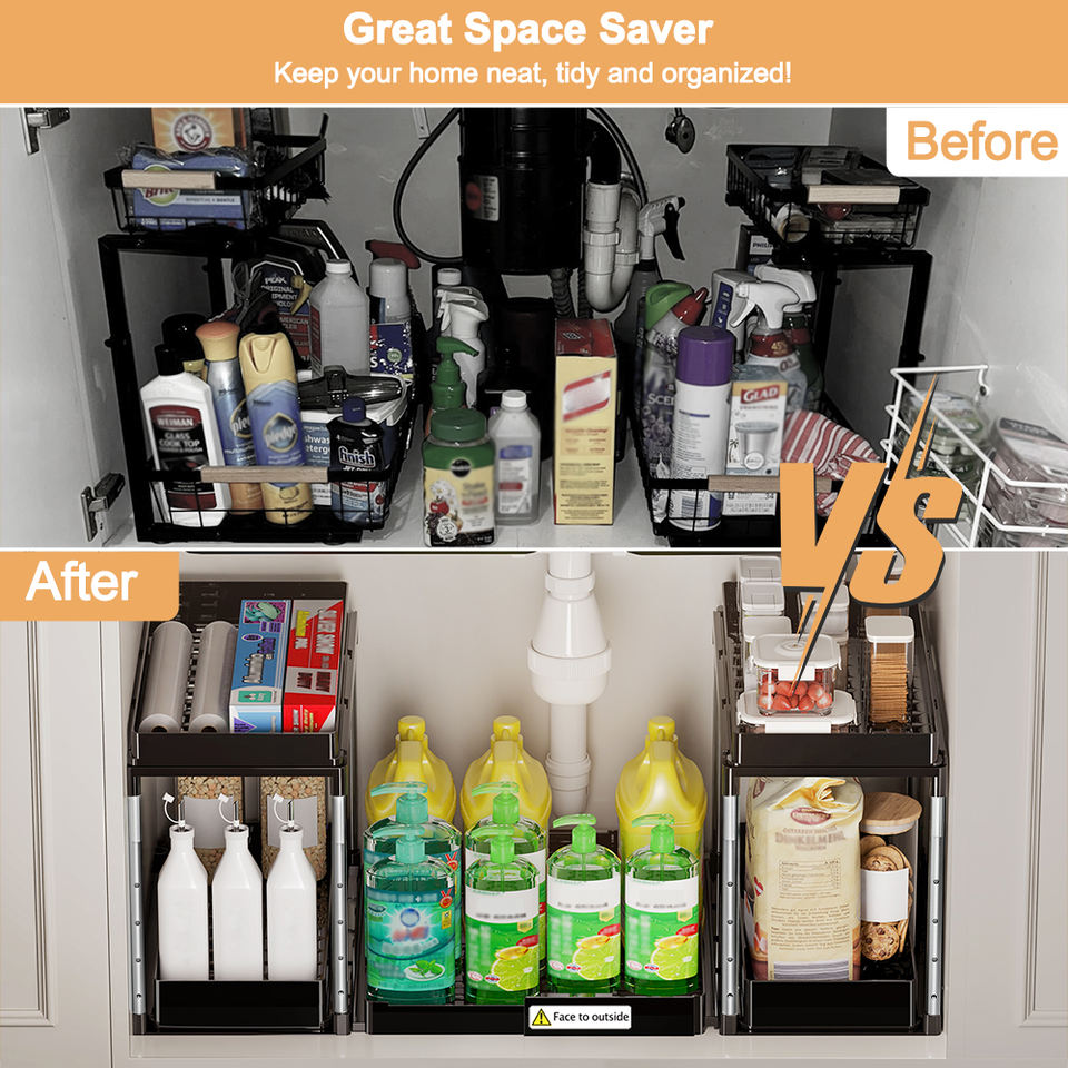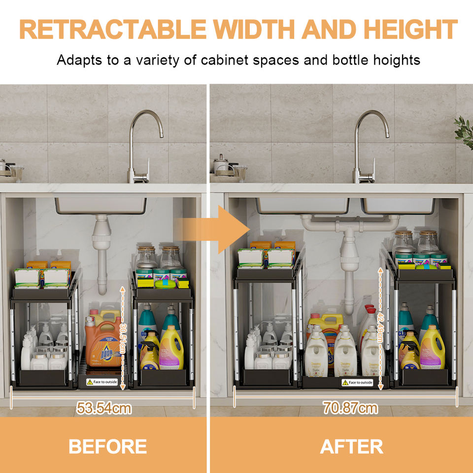 2-Tier Multifunction Kitchen Sink Storage Organizer Portable Standing Type Rectangle Black Home Organizers Save Space Racks