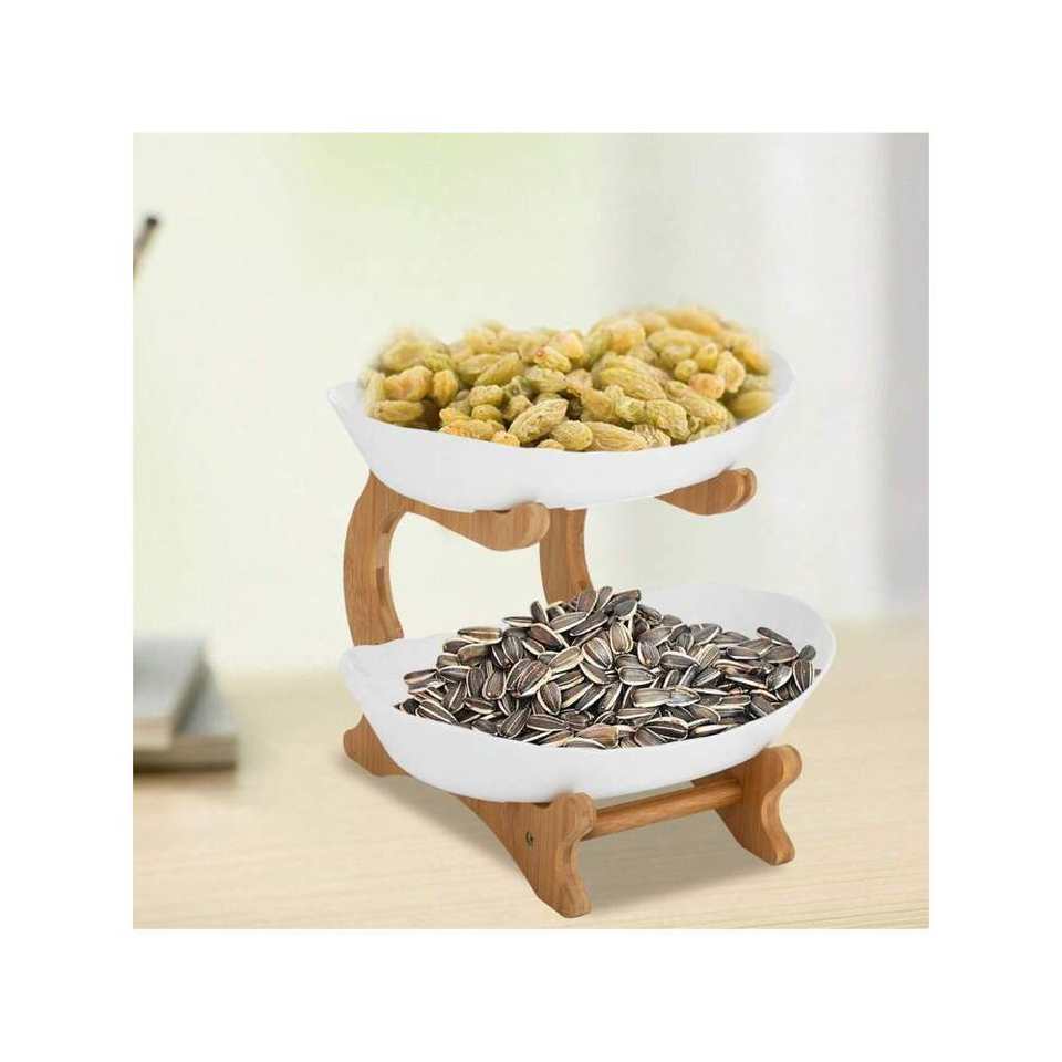 2-Tier Multifunctional Fruit Serving Tray 2-Layer Open Design Snack Bowl PP Material Table Top Fruit Basket Stand