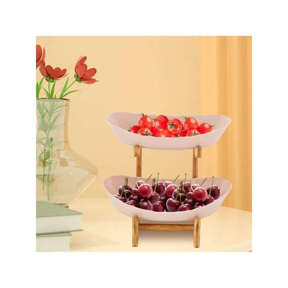 2-Tier Multifunctional Fruit Serving Tray 2-Layer Open Design Snack Bowl with PP Material for Table Top Fruit Display