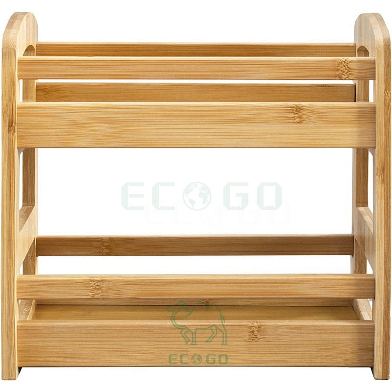 2 - Tier Natural Wood Bamboo Spice Rack Organizer for Kitchen Countertop Cabinet - Ideal for Salt Pepper Jars Storage