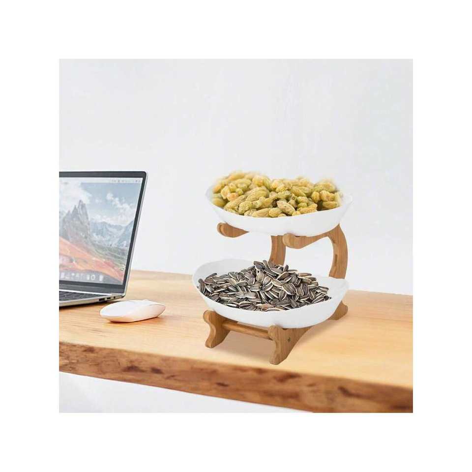 2-Tier Open Design PP Fruit Serving Tray 2-Layer Snack Bowl Multi-Function Table Top Fruit Basket Stand
