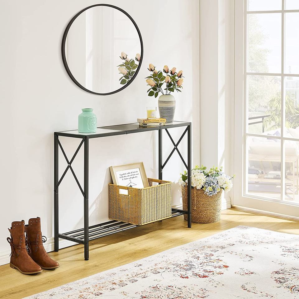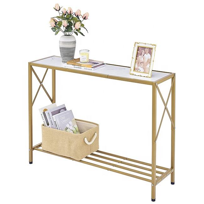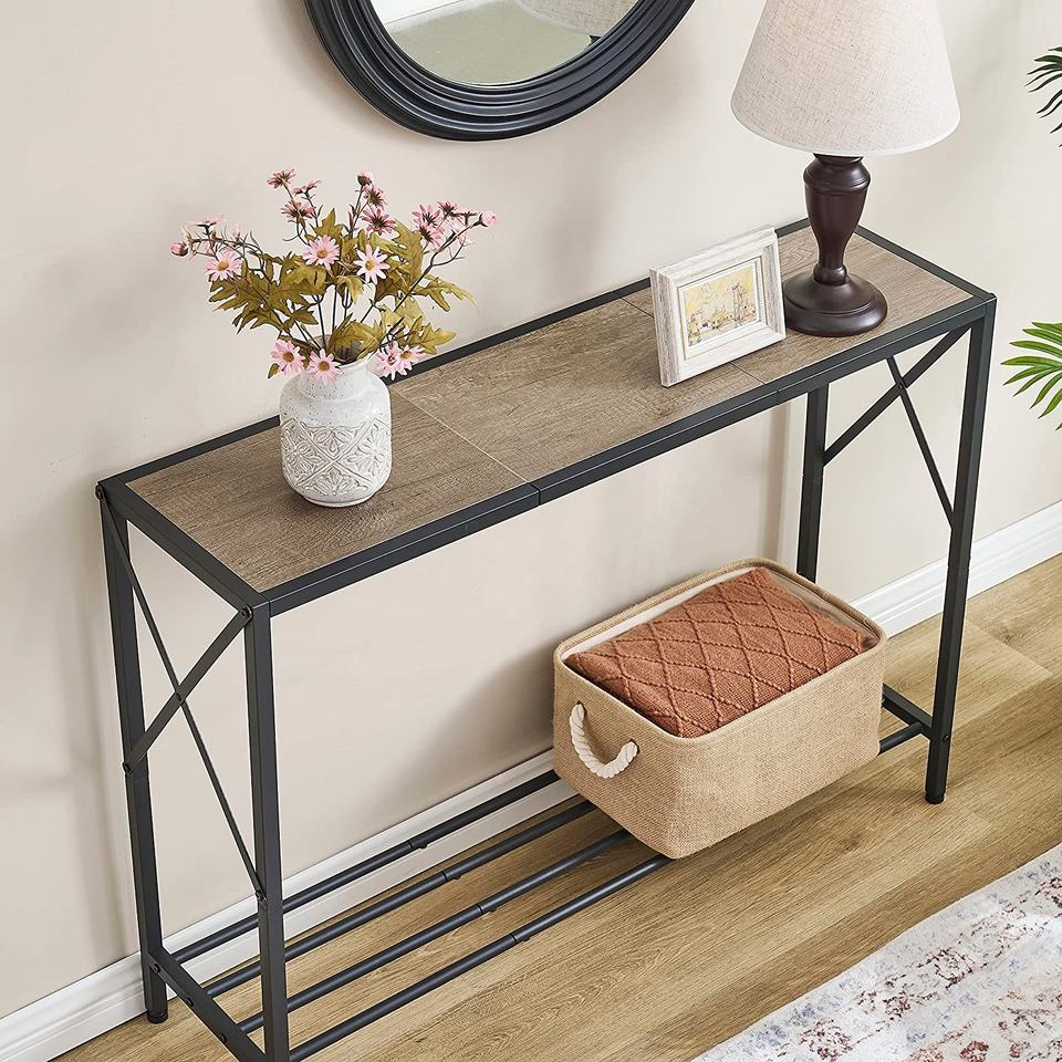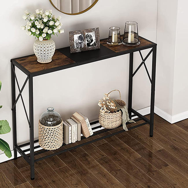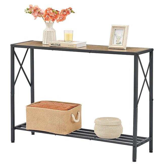 2 Tier Shelf Multi-function Mobile Desk Industrial Entrance Skinny Side Table Plant Stand Wood Narrow Console Table