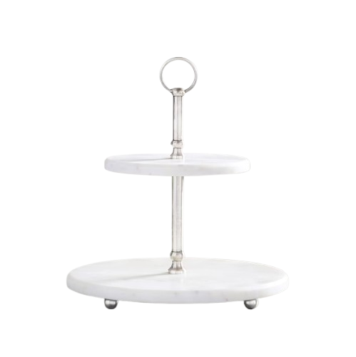 2 Tiered Glass Plates Supported by Black Metal Stand Cake Tray With Customized Color and Size With Sizes 13x20 Inches