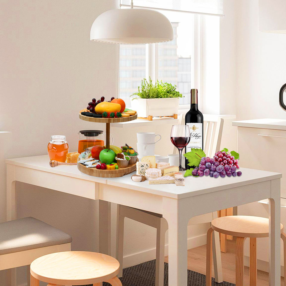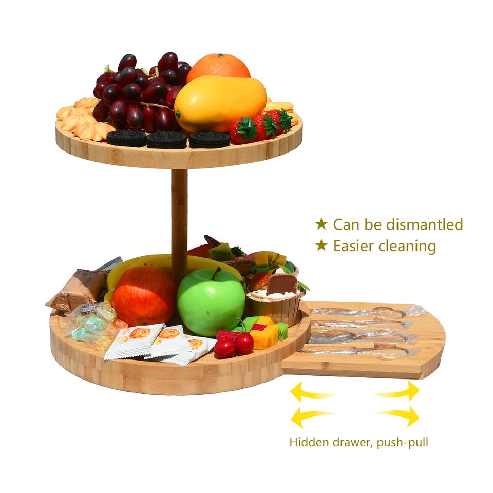 2 Tiers Round Rotary Bamboo Cheese Board and Knife Set with Food Plate for Women Bachelorette Party Gi