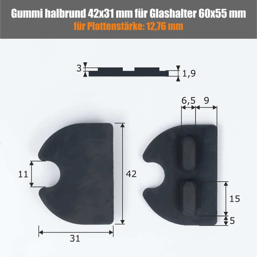 2 X Semi-Round 60x55 mm Rubber Glass Holder PS 8-12.76 mm 42x31 mm for Glass Product Category Seals