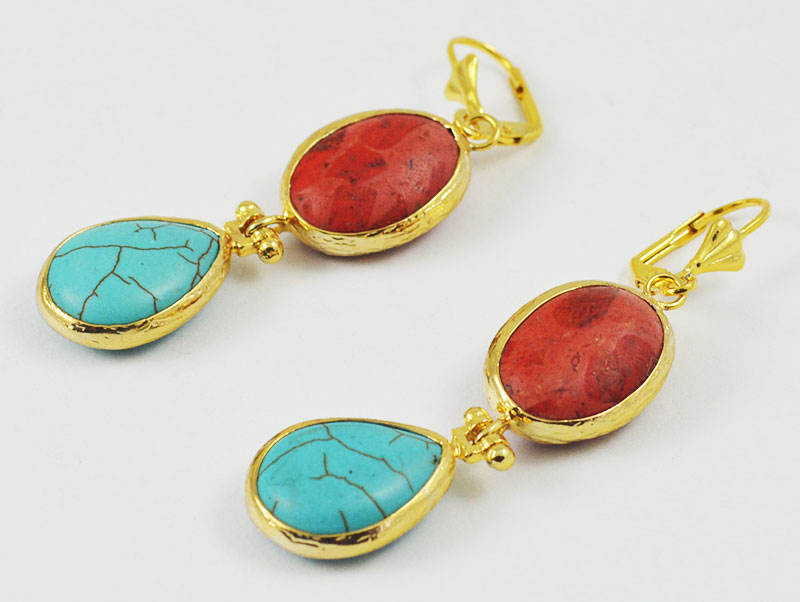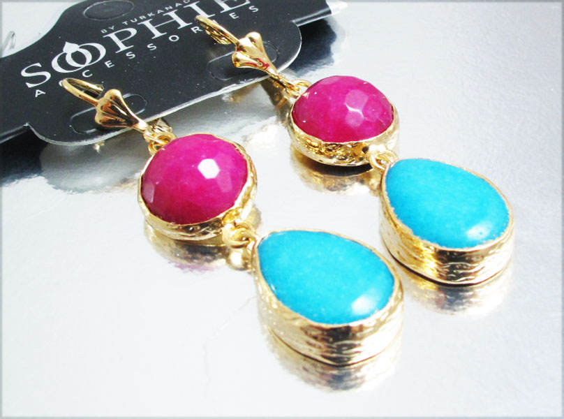 2 gemstone New Fashion Golden modern stud tassel gemstone Earrings handmade geometric jewelry