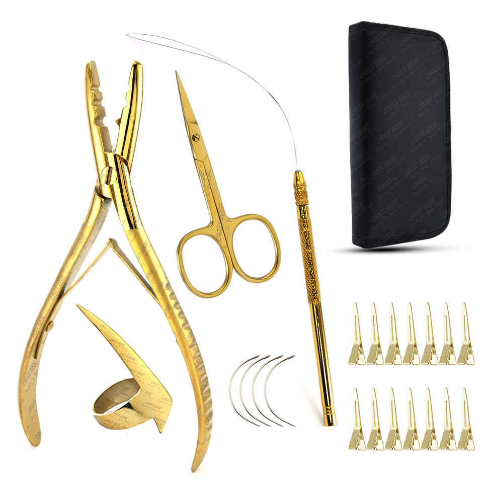 2 hole Micro link crimping Plier With pulling loop needles sectioning clips scissors Human Hair Extension Pliers Tool Kit set