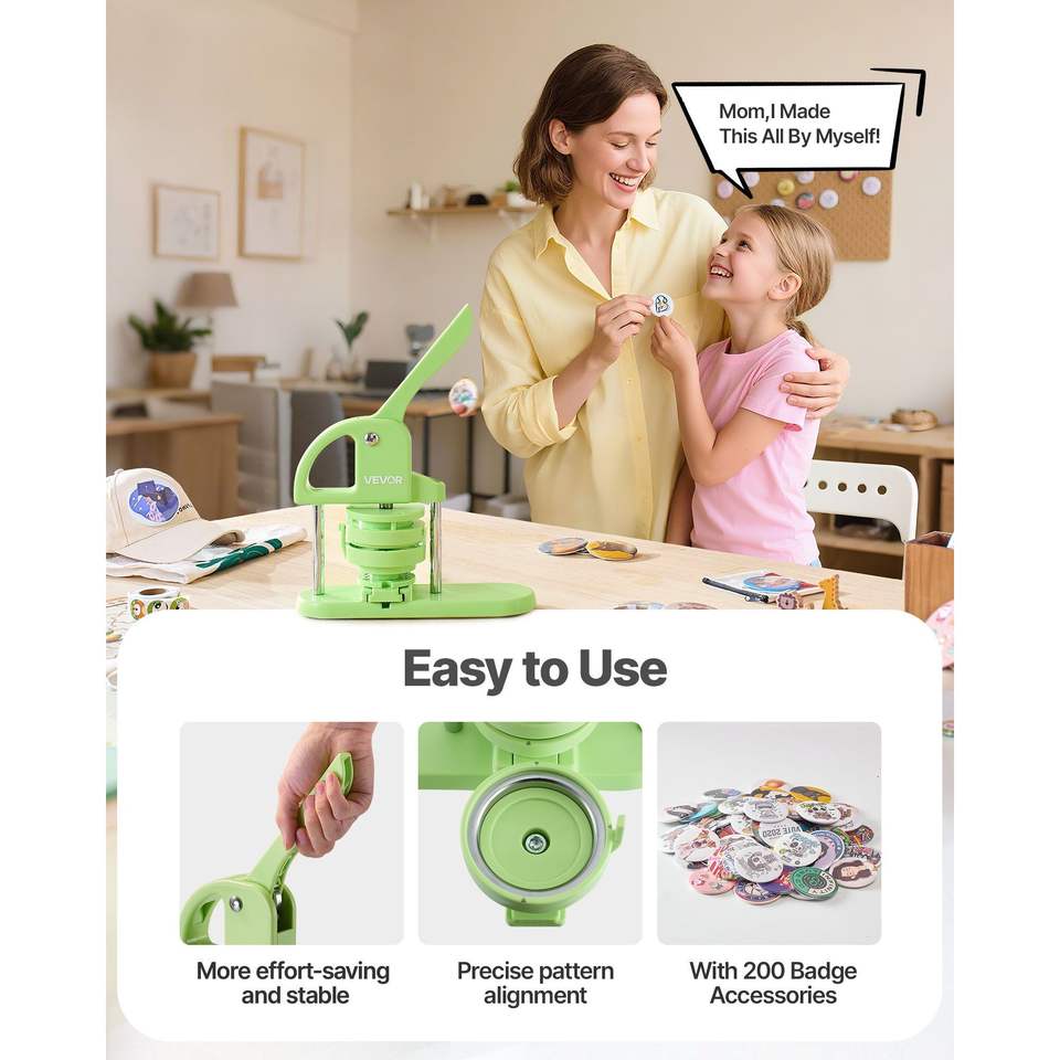2-in-1 Button Maker Machine 1.26/2.28 Inch Plastic Pin & Circle Cutter 200pcs Reinforced Magic Book Badge Parts