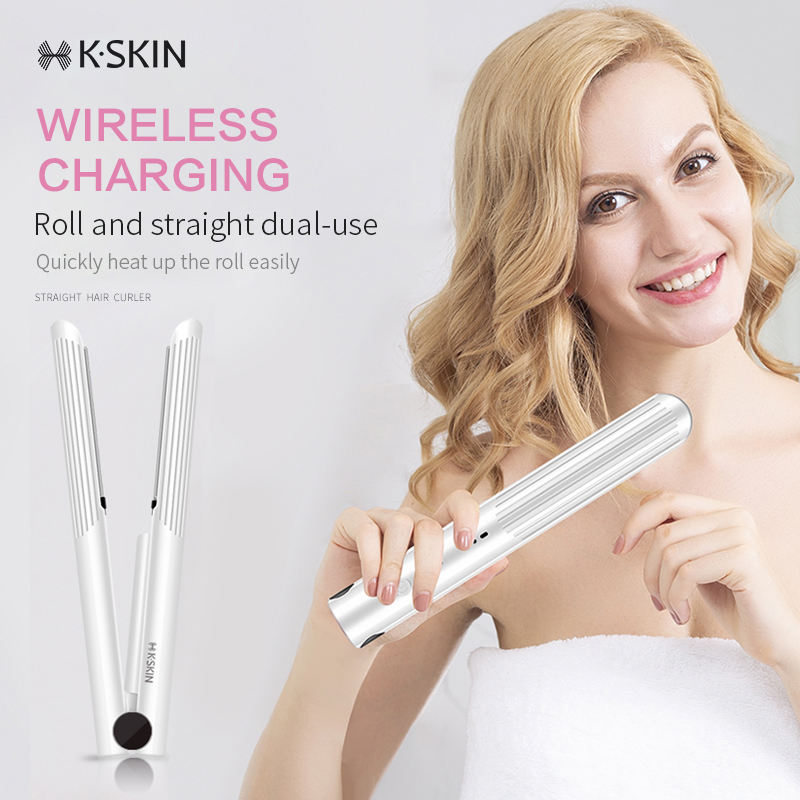 2-in-1 Cordless Hair Straightener & Curler Portable USB Rechargeable Flat Iron with 3D Floating Plates for Travel Styling