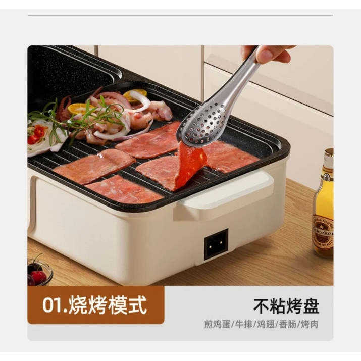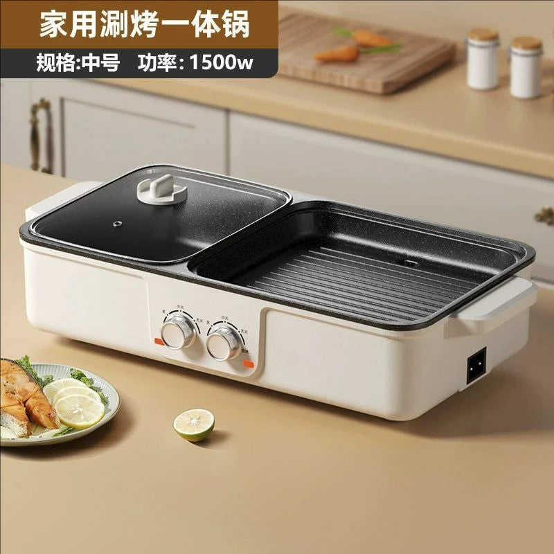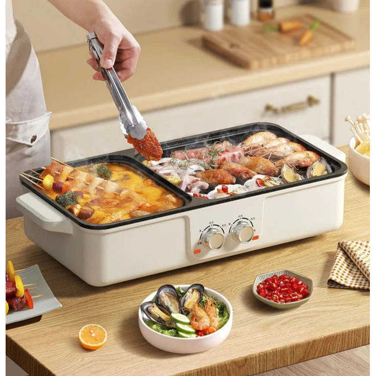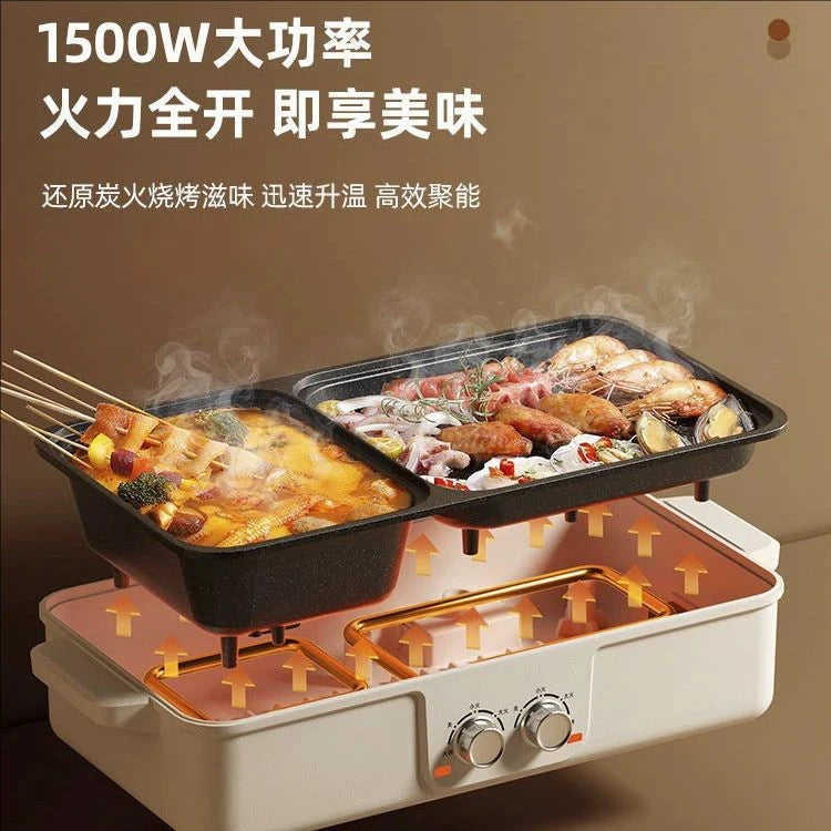 2 in 1 Electric Hot Pot BBQ Grill 1500W Multifunction Portable Home Foldable Non-Stick Split Pot Smokeless Barbecue Pan