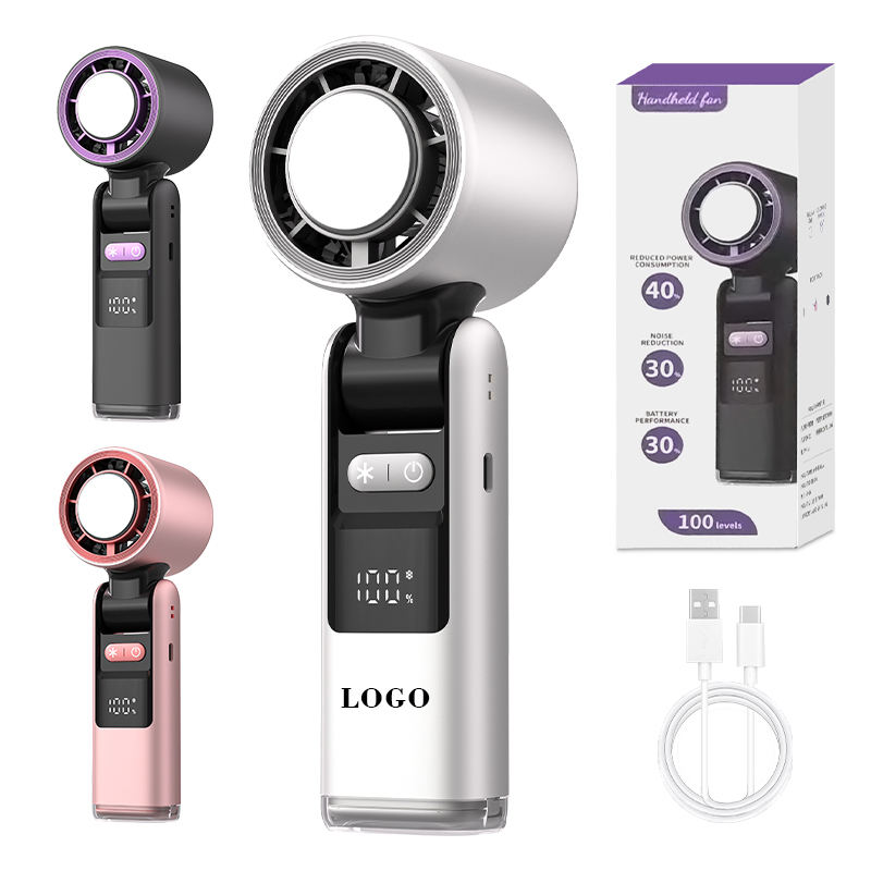 2-in-1 Handheld & Desktop Led Hand Fan 100 Speeds Adjustable High Speed Fan 2400mAh Battery Rechargeable Foldable Mini Fan