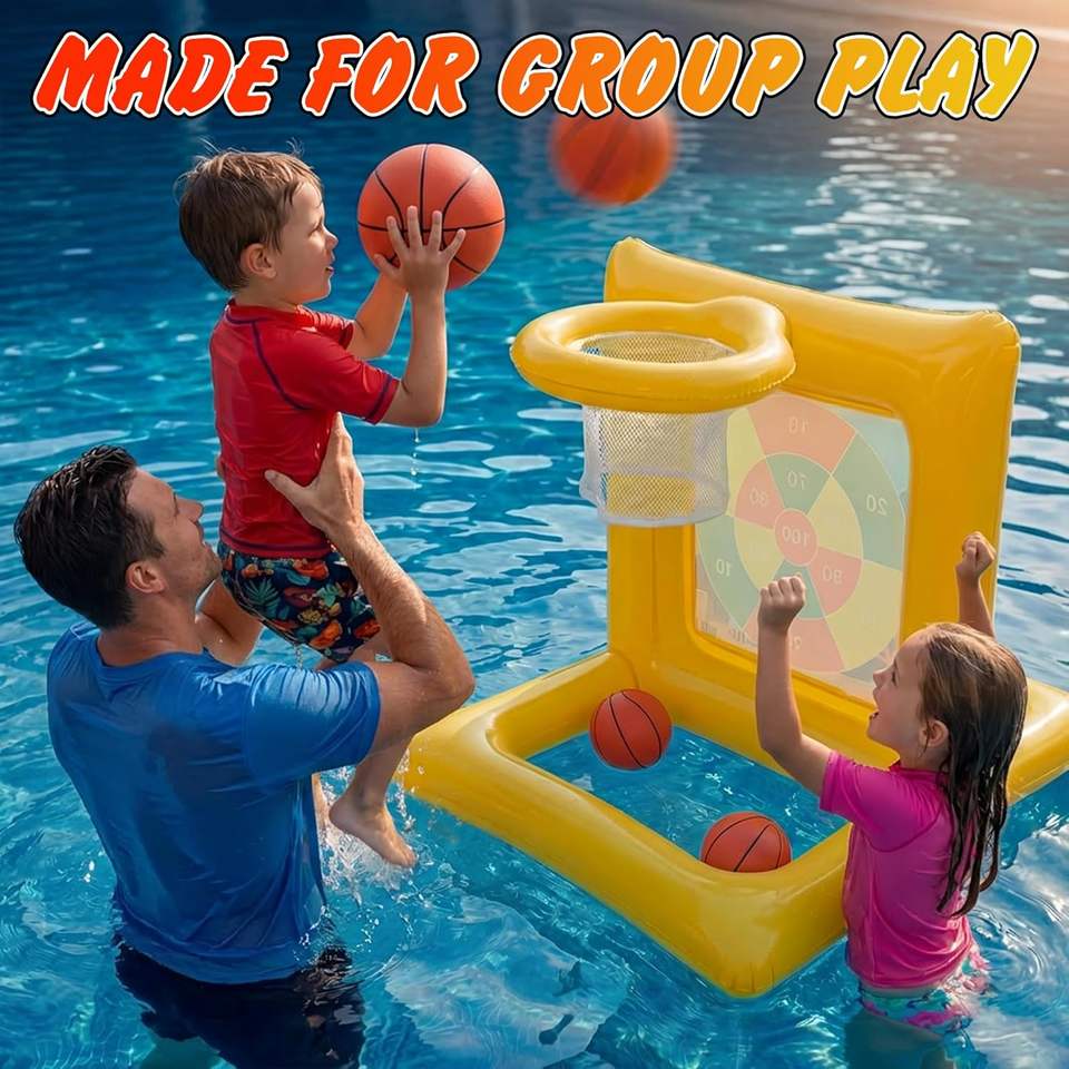 2-in-1 Inflatable Pool Basketball & Dart Board Game Set with Water-Fill Base