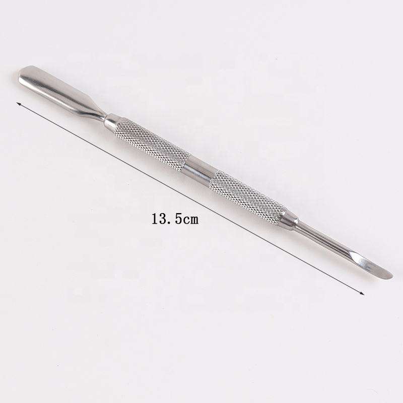 2 in 1 Professional Nail Care Tool Custom Logo Double Sided Stainless Steel Cuticle Pusher Nail Cleaner