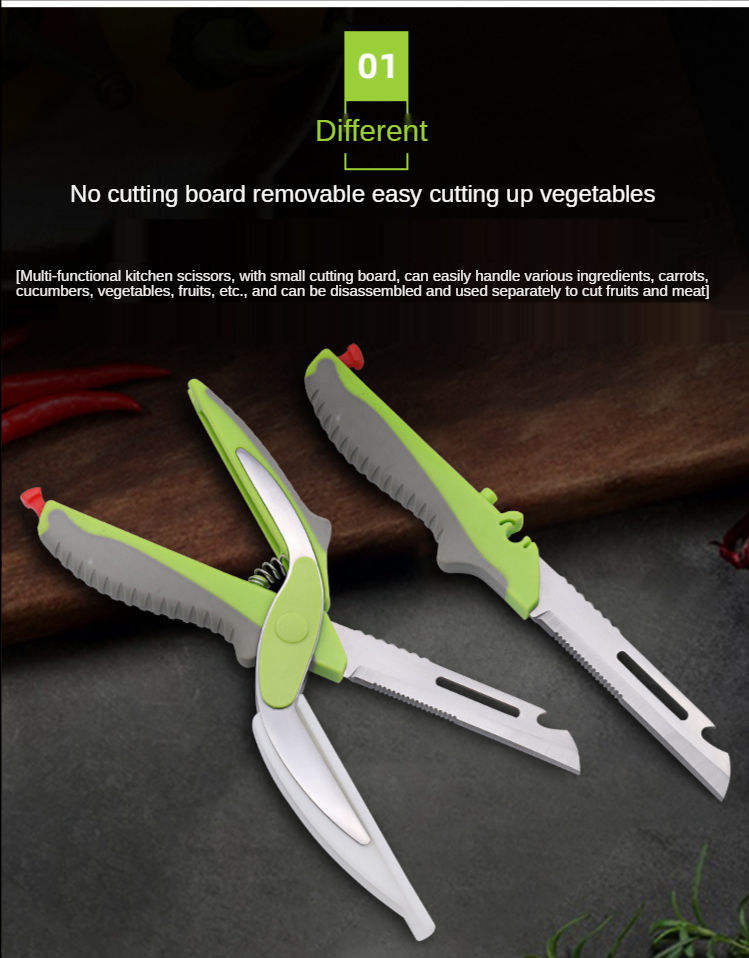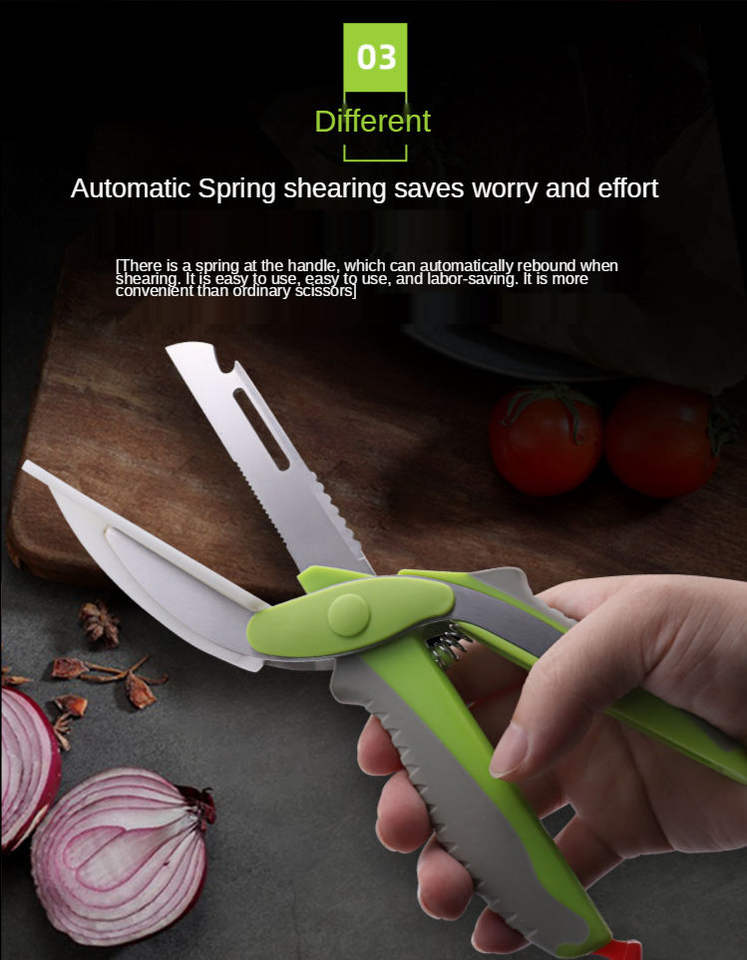 2-in-1 Smart Laser Shearing Scissors Six-in-One Industrial Grade Stainless Steel Multi-Purpose Kitchen Tools Green Smooth Edge