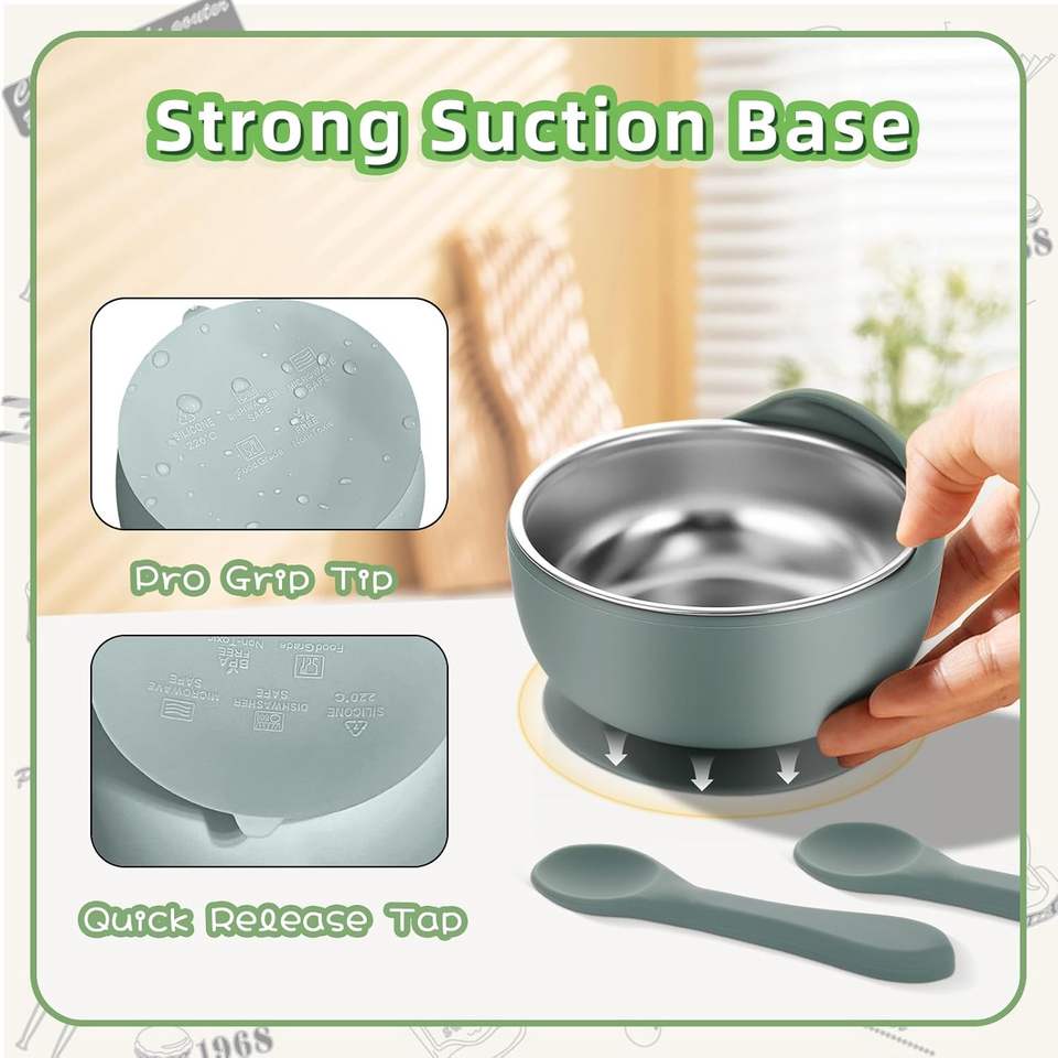 2-in-1 Stainless Steel Silicone Suction Bowls Set Non-Toxic Snack Container Removable Suction for Toddlers Morandi Colors Baby