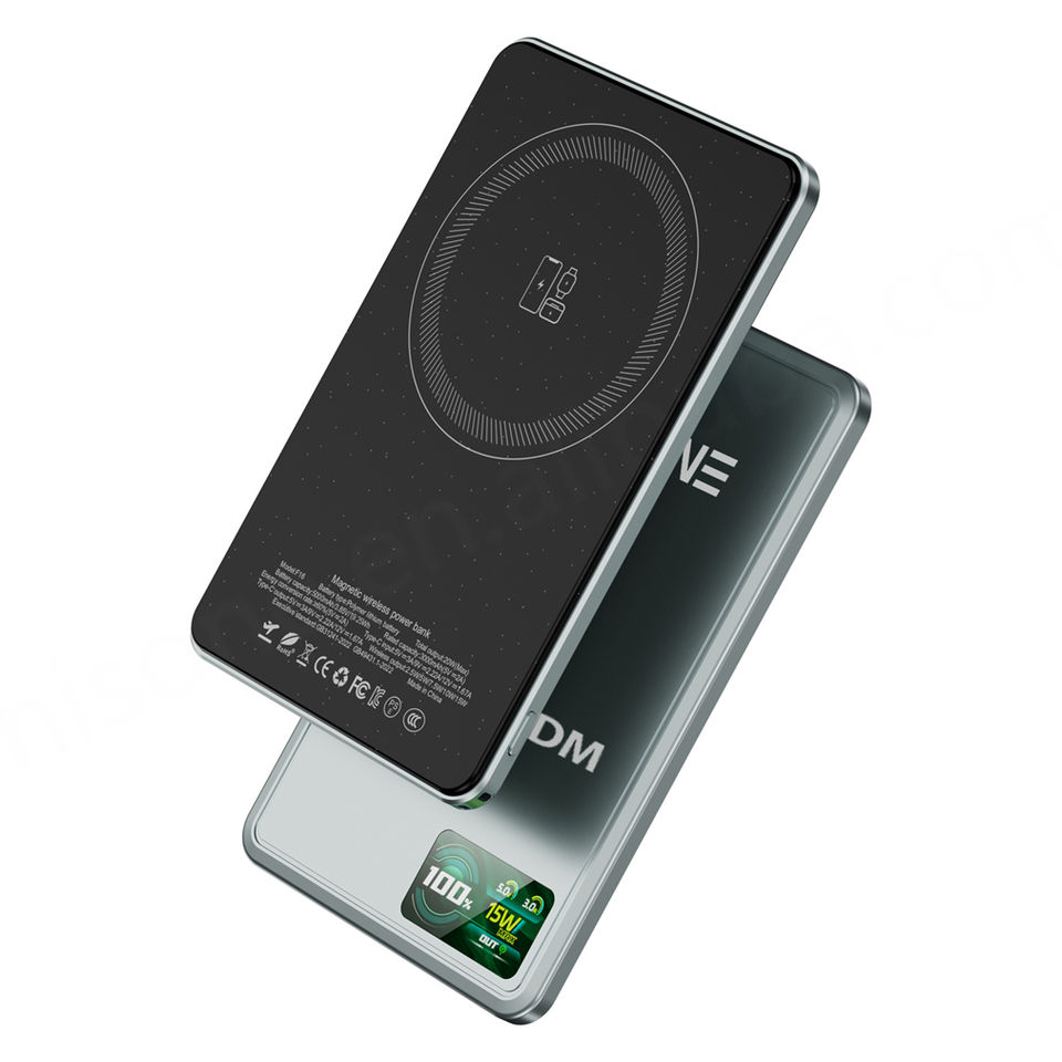 2-in-1 Ultra Slim Aluminum Alloy Wireless Magnetic Power Bank 5000mAh 8mm 15W Charging LED Display Portable Phone Android