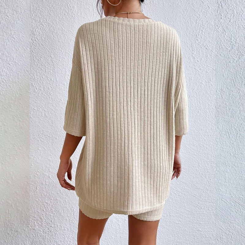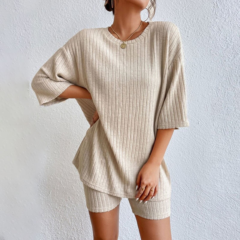 2025 Women's Casual Solid Color Short Sleeve Crewneck Set Zipper Decoration with Stand Collar New Summer Collection