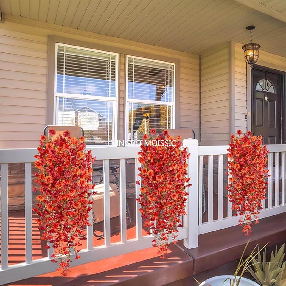 2 pieces Artificial Fall Hanging Flowers Realistic Morning Glory Vines for Outdoor Patio Garden Decor Artificial Flower