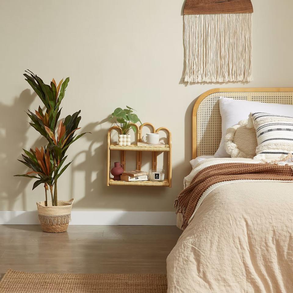 Size: L18,1 xW8,7 x H17,3 inch:2-tier wall-mounted hanging shelf in natural rattan