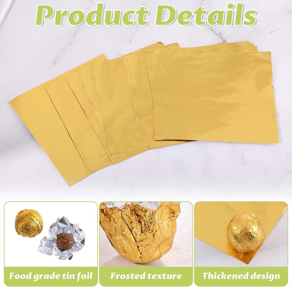 20*20cm Gold Chocolate Paper Candy Wrapping Paper Aluminium Foil Wrapper Wedding Food Gifts Packaging Aluminum Foil Sheet
