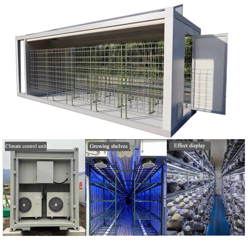 20/40ft Mushroom Cultivation Container Fruiting Chamber System with Climate Control and Growing Shelves