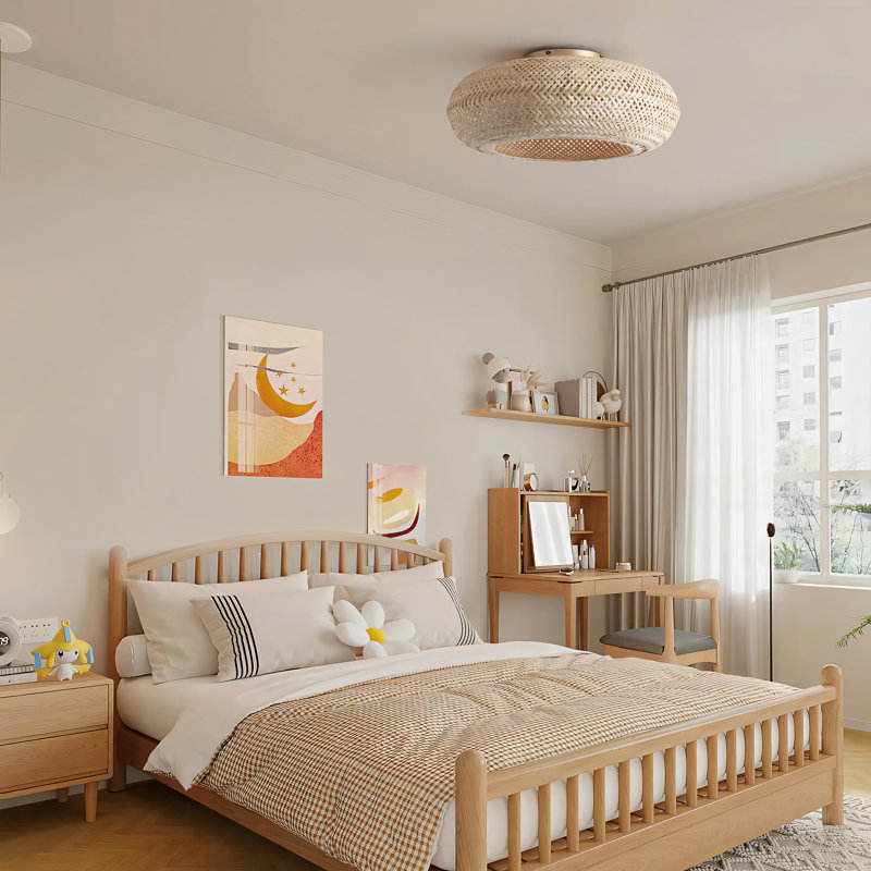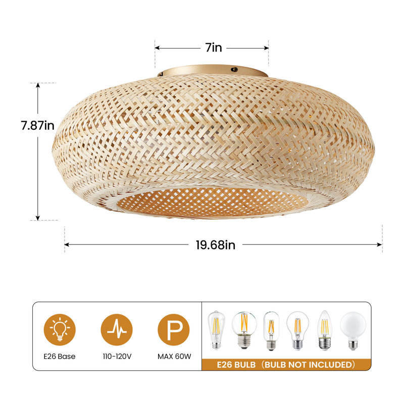 20\" Boho Rattan Caged Ceiling Fan with Lights for Living Room Furniture