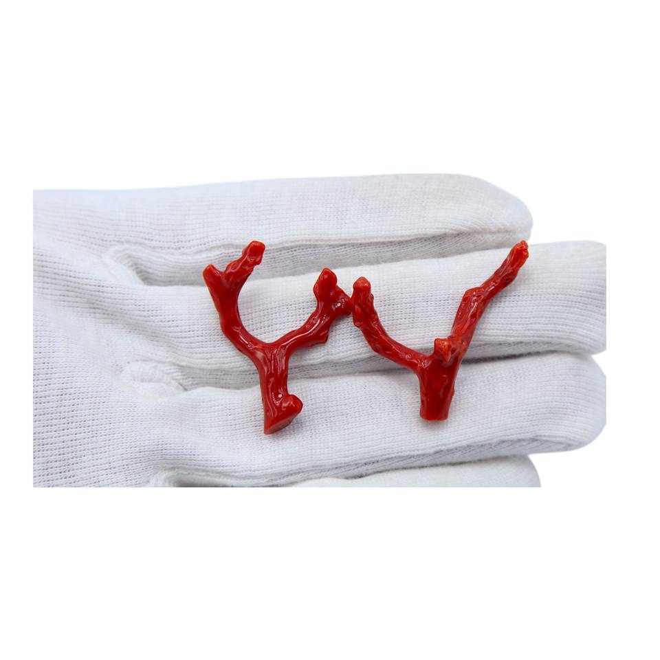 20 Carat Italian Red Coral Match Pair Stick Shape Rough Polished Gemstones for Earring Jewelry Making Loose Coral
