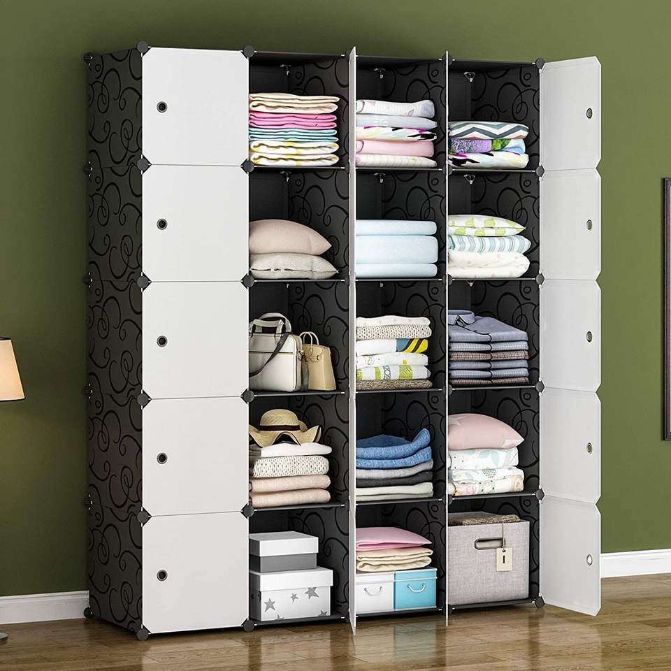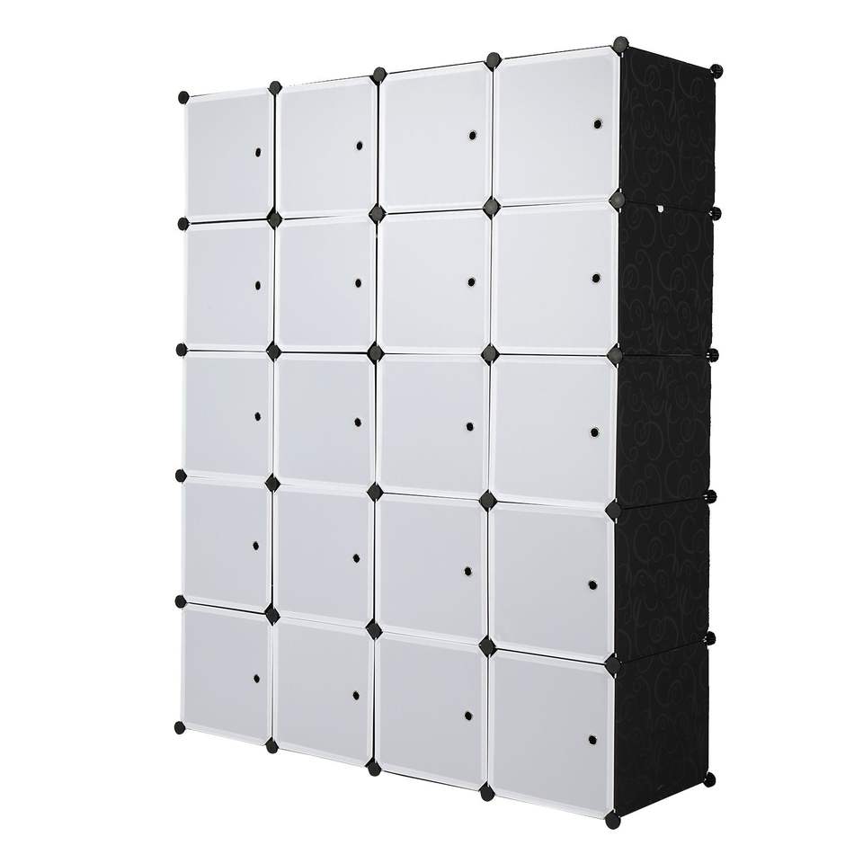 20-Cube Organizer Stackable Plastic Modular Closet Cabinet with Hanging Rod Multifunctional Design for Storage Organization