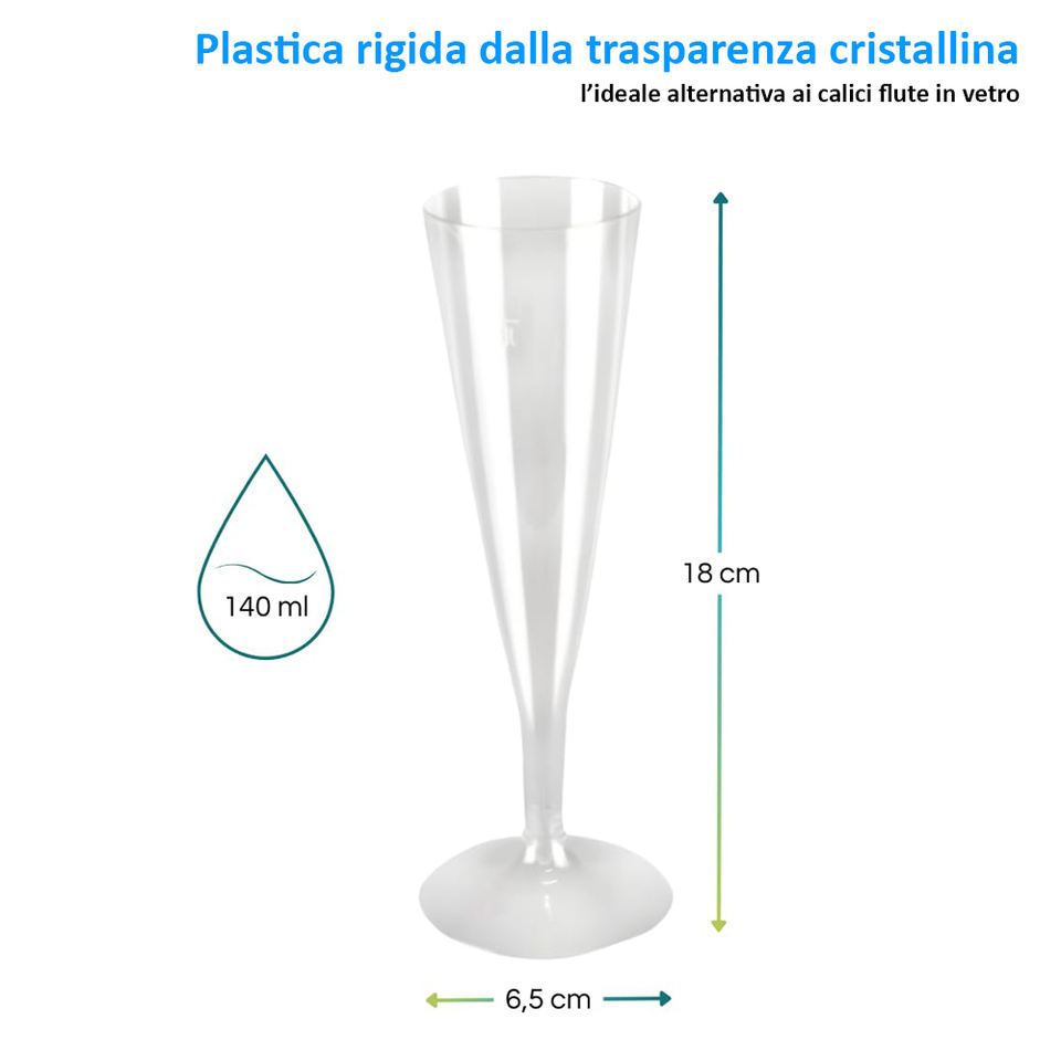 20 Elegant 140ml Clear Plastic Flute Glasses Removable Stem for Sparkling Wine Prosecco Cocktails for Parties