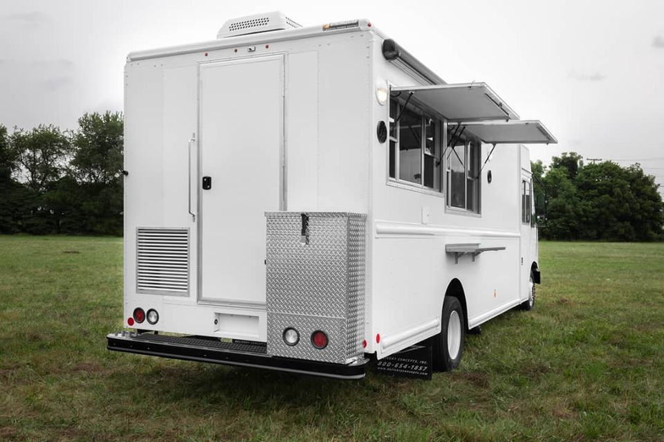 20-Foot F59 Food Truck Fiberglass Trailer with Two Service Windows and Roll-Out for Snacks Hotdogs Candies Chips BBQ