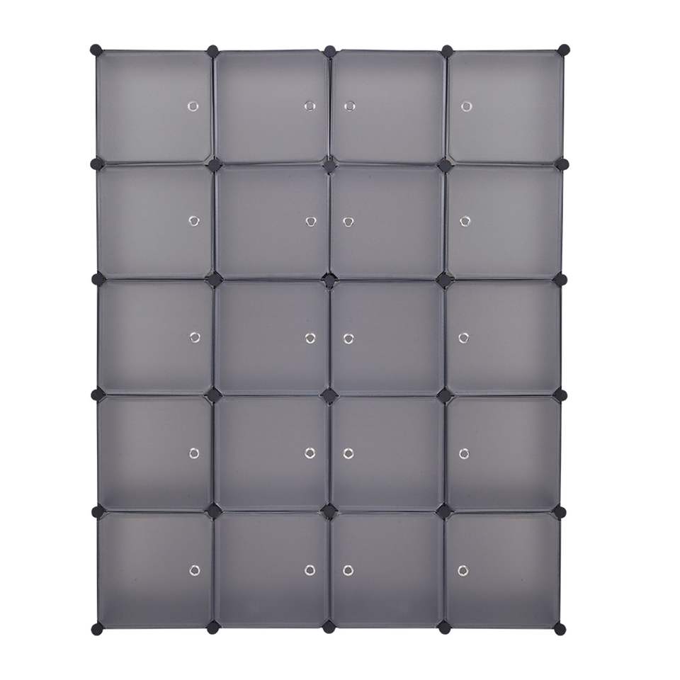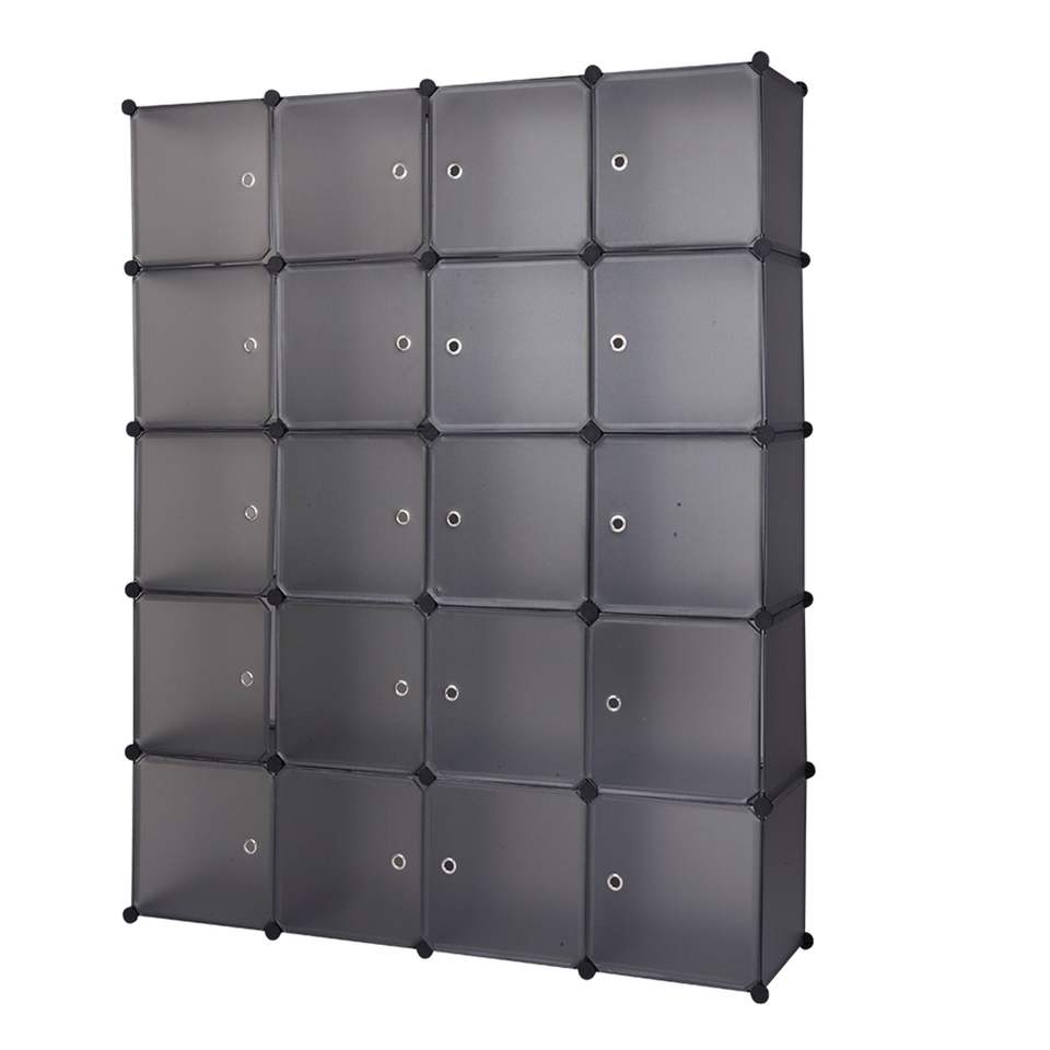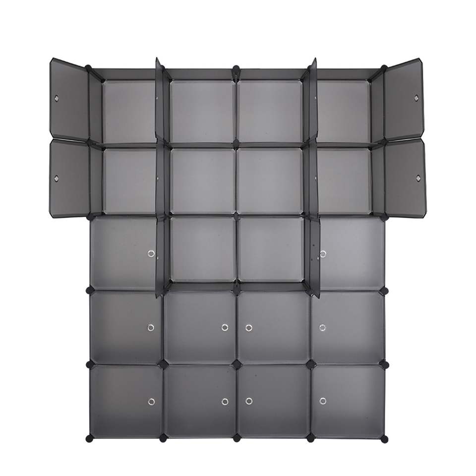 20 Gray Stackable Plastic Cube Storage Shelves Multifunctional Modular Closet Cabinet with Hanging Rod Design Organizer