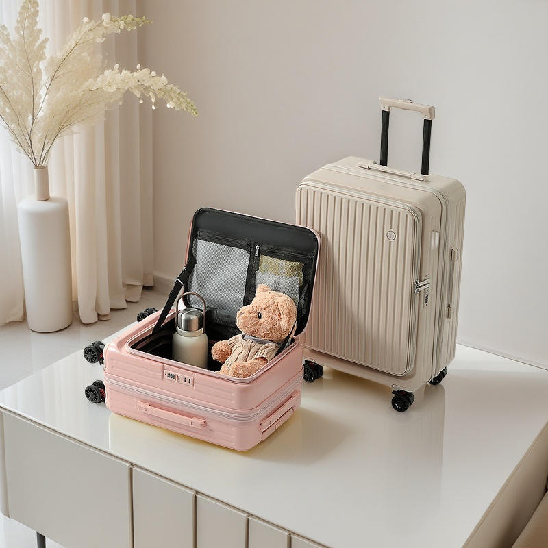 20-Inch Carry-On Suitcase Front Open Spinner Wheel Solid Color Unisex Travel Luggage With Lock Leisure Use
