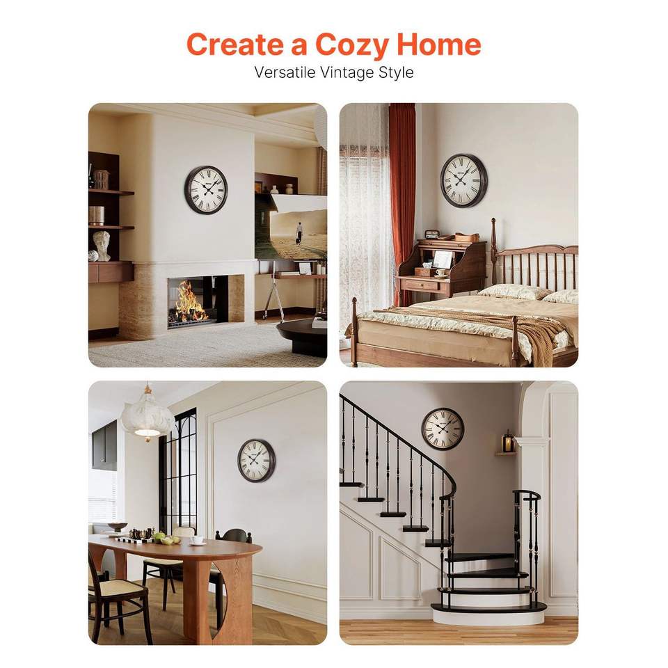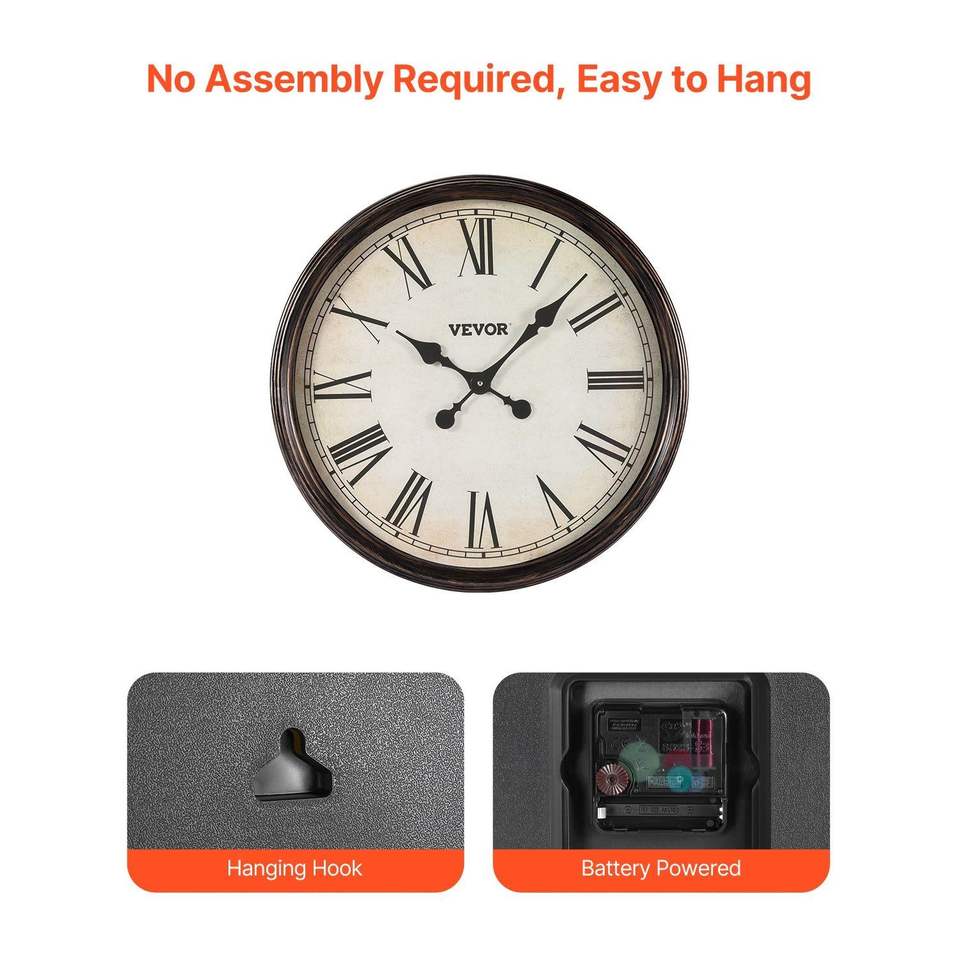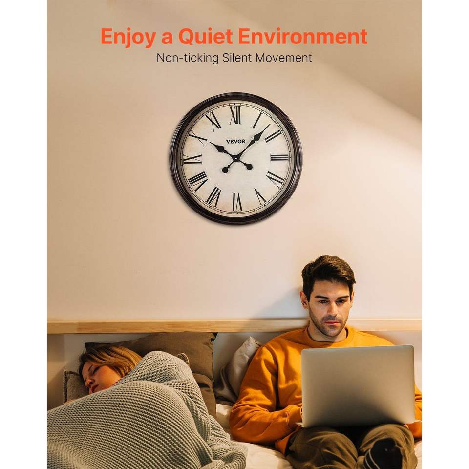 20-Inch Roman Numerals Battery-Operated Wall Clock Silent Classic Decorative Living Room Clock with Non-Ticking Feature