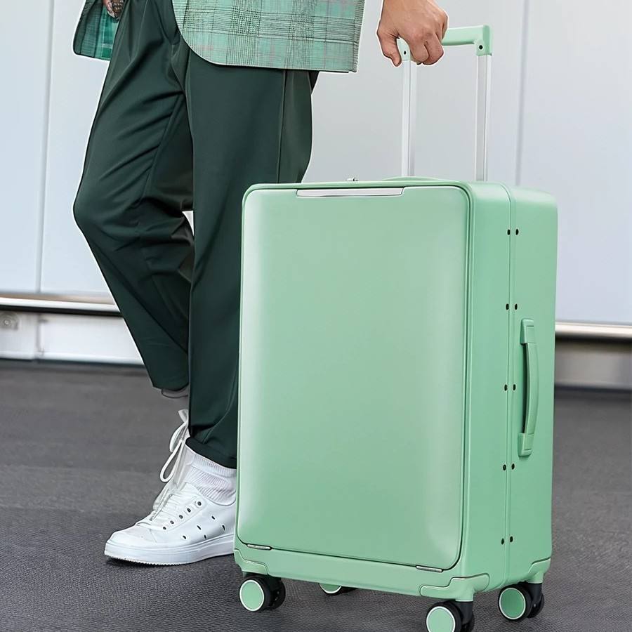 20-Inch Suitcase Front Open Silent Wheels Business Travel Unisex Light Green Solid Color Spring 2024