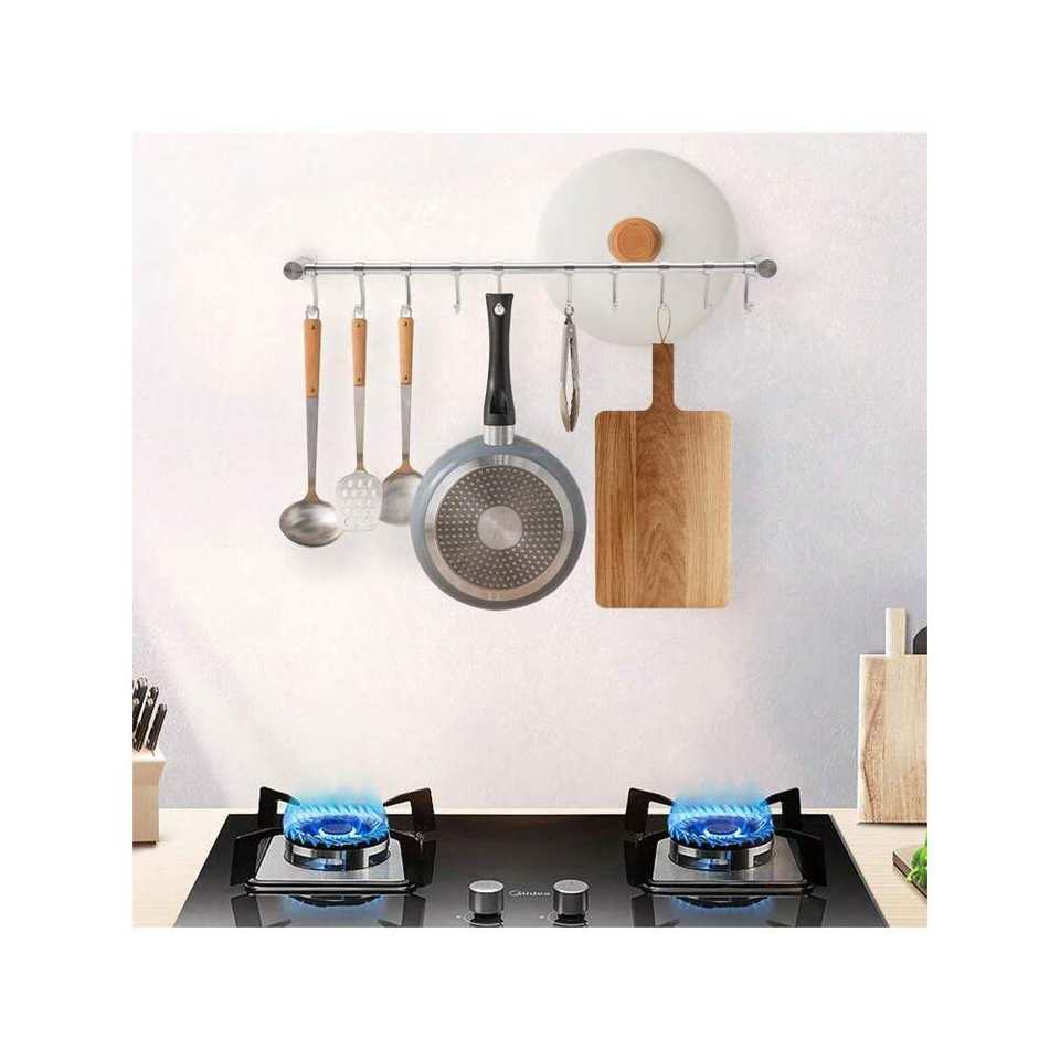 20-Inch Wall-Mounted Kitchen Hanging Rack with 10Pcs Noiseless Sliding Hooks 304 Stainless Steel Utensil Storage Hanger