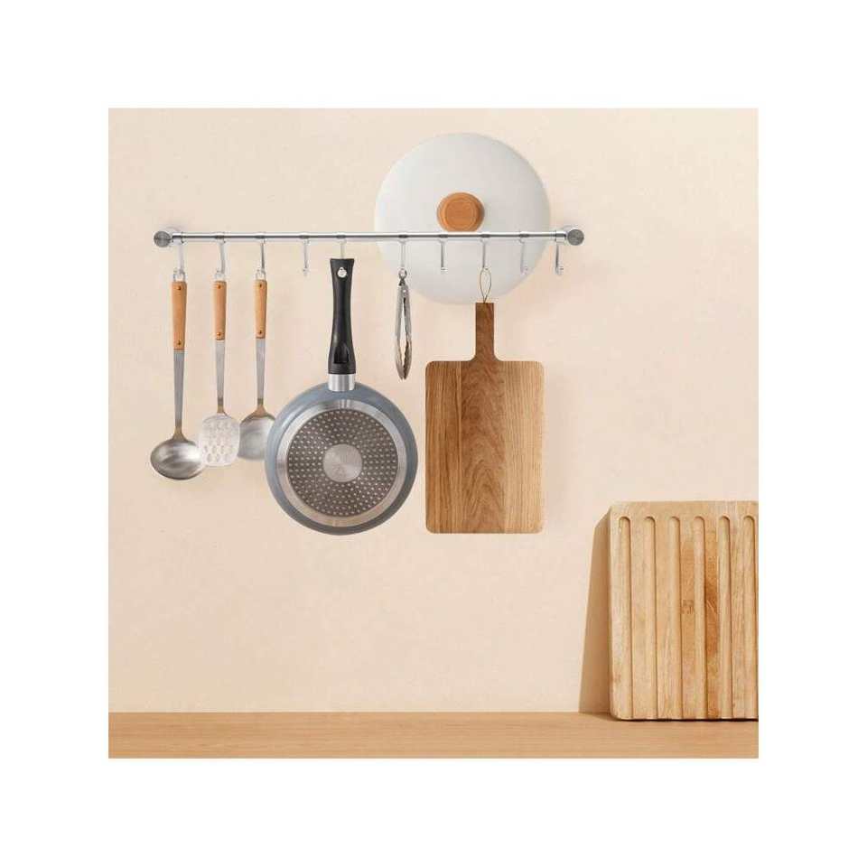 20-Inch Wall-Mounted Kitchen Hanging Rack with 10Pcs Noiseless Sliding Hooks 304 Stainless Steel Utensil Storage Hanger