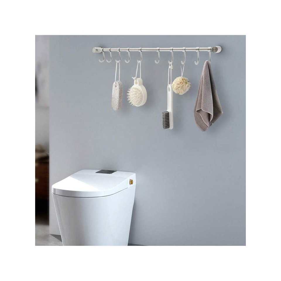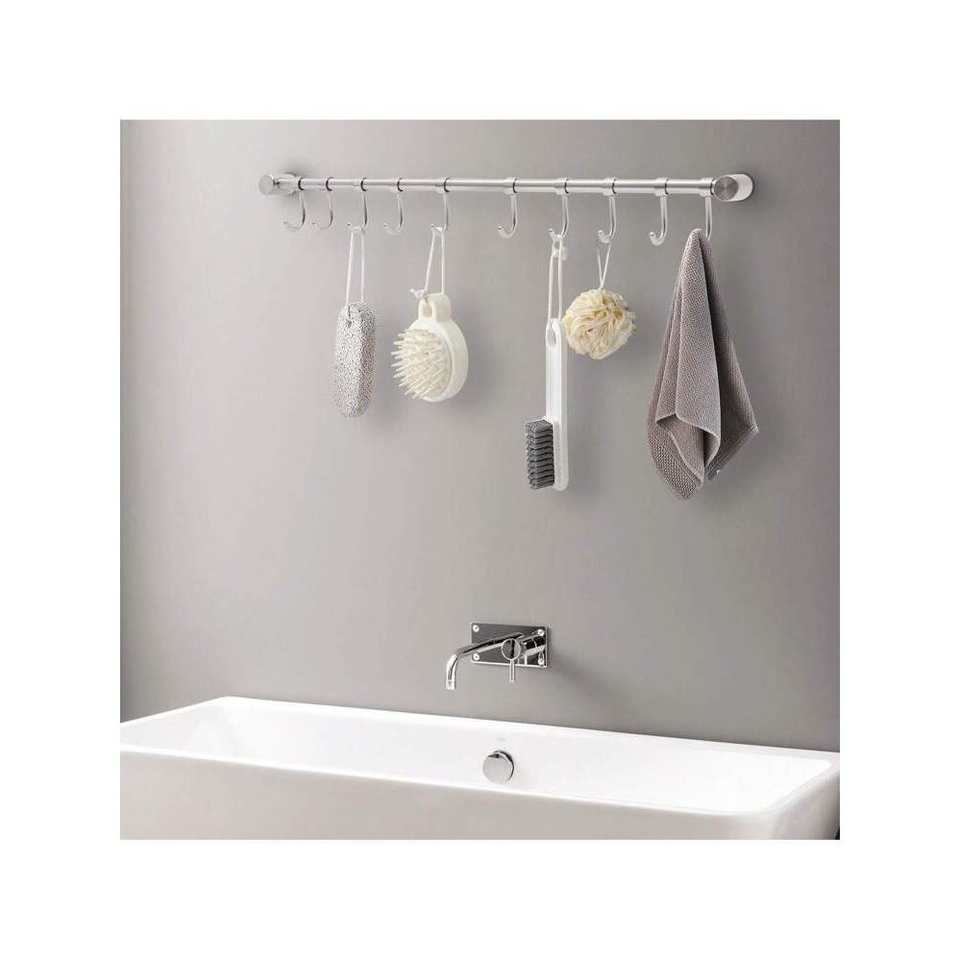20-Inch Wall-Mounted Kitchen Hanging Rack with 10Pcs Noiseless Sliding Hooks 304 Stainless Steel Utensil Storage Hanger