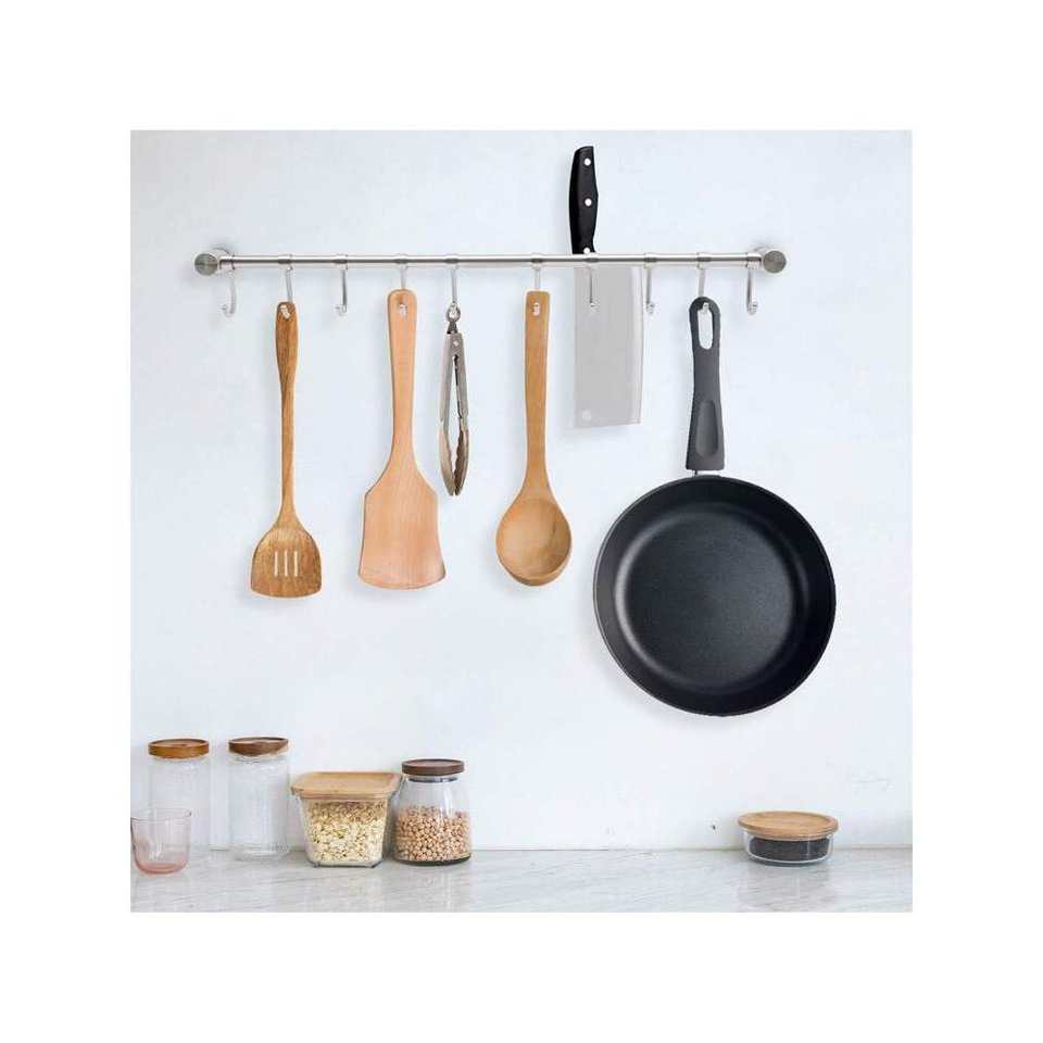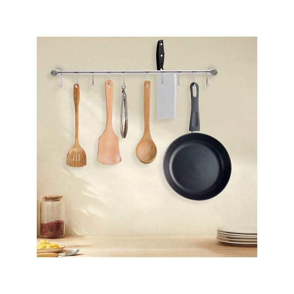 20-Inch Wall-Mounted Kitchen Hanging Rack with 10Pcs Noiseless Sliding Hooks 304 Stainless Steel Utensil Storage Hanger