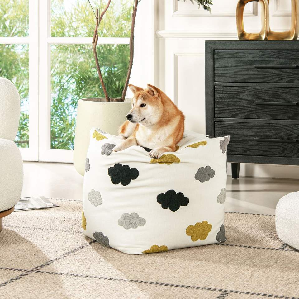 20\" Luxury Oversized Cumulus Cream Bean Bag Cube Ottoman Embroidered Bean Bag Sofas