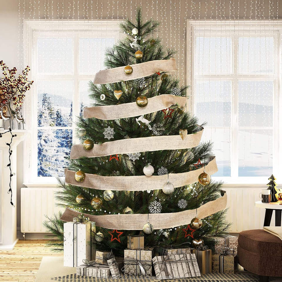 Width:20 Meters 4 Inches Burlap Ribbon Wide Jute Ribbon Natural