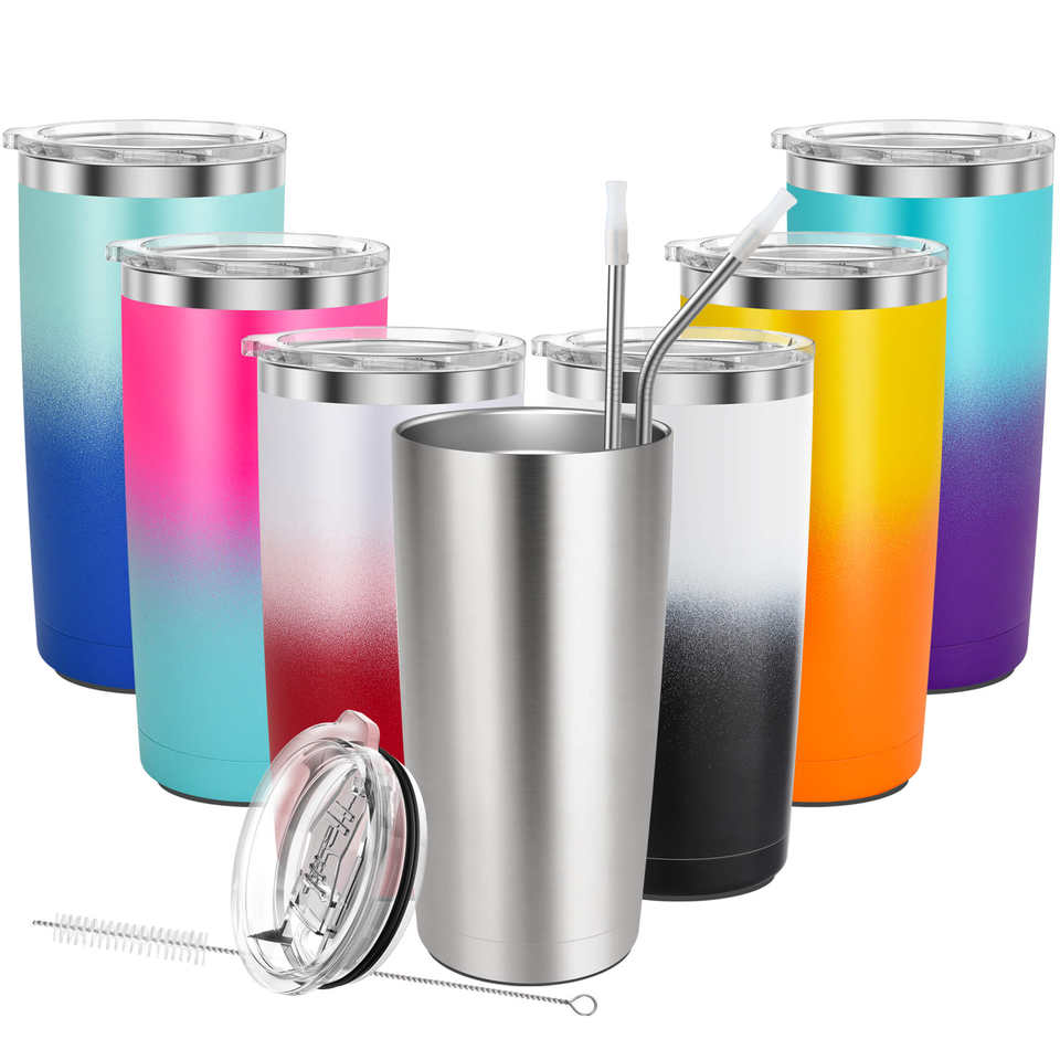20 Oz Tumbler with Straw, Travel Mug with Straw, Stainless Steel Double Wall Mug with Slide Lid and Insulated Water Bottle