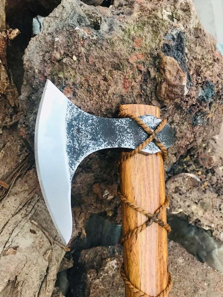 20-Pack Viking Axe Steel and Carbon Damascus Axe Head with Wood and Aluminum Handle for Camping & Cutting Applications