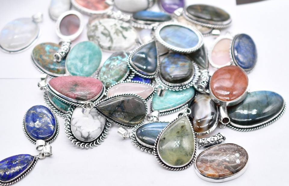 20 Pcs Gemstone Pendant Lots Oxidized Silver Plated Jewelry Designer Necklace Pendant Mix Lot For Women. Mix Color Gemstone