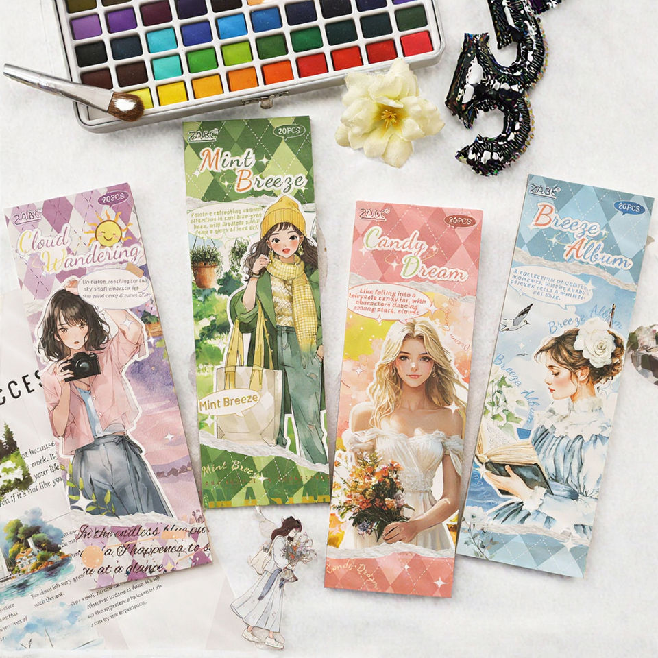 20 Sheets/pack Cartoon Pattern Lightweight Paper Stickers for Kids DIY Journal Sticker Book PET Material Die Cutting Printing