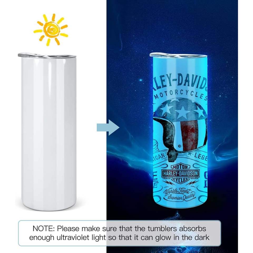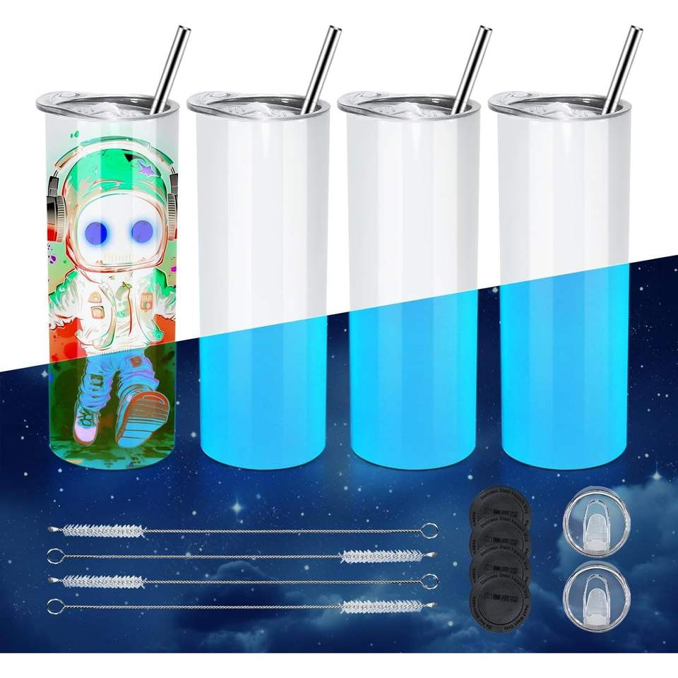 20 oz Sublimation Tumblers 25pcs Glow Dark Skinny Straight Tumbler Blank White Blue Glowing Hot Thermal Insulation for Party