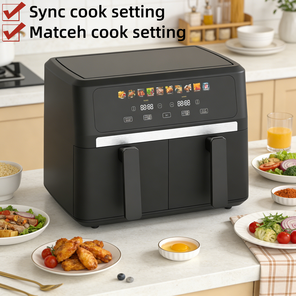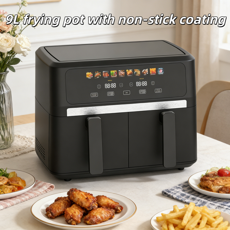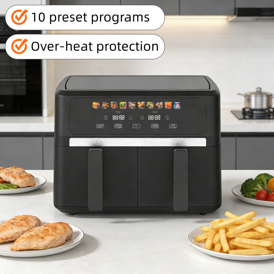 200 Adjustable Temperature Electric Square Stainless Steel Double Basket Air Fryer Modern Digital Control Oil-Free Cooking