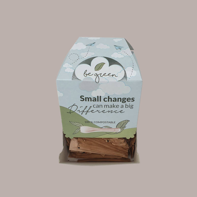 200 Beige PLA Biodegradable Spoons for Ice Cream Paper Wrapped in Box