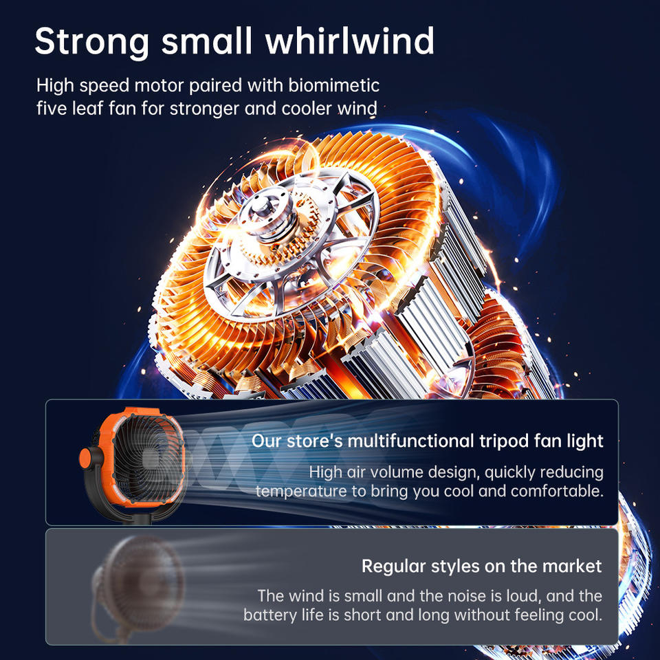 20000mAh Outdoor Oscillating Tent Fan with Light Powerful Hanging Rechargeable Camping Fan