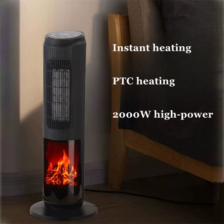 2000W PTC Ceramic Heater Electric Tower Fan New Design 3D Flame Portable Home Office Space Heating Waterproof Household Garage